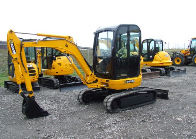 Koparka gąsienicowa JCB 8030 ZTS z kabiną zamkniętą i ogrzewaną. Waga: 3.2 tony, gąsienice gumowe, lemiesz spycharkowy, instalacja hydrauliczna, trzy łyżki koparkowe w komplecie, kogut oświetleniowy.
