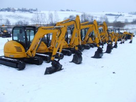 Koparka gąsienicowa JCB 8032 ZTS z kabiną zamkniętą i ogrzewaną. Waga: 3367 kg, gąsienice gumowe, lemiesz spycharkowy, instalacja hydrauliczna, dwie łyżki koparkowe w komplecie.
